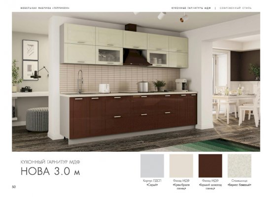 Цветовое решение: серый/крем-брюле + горький шоколад глянец.